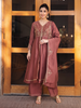 Berry Embroidered Silk Anarkali Dress Set with Dupatta For Women