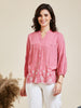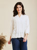 Off White Embroidered Rayon Shirt for Women