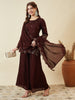 Elegant Lavender Silk Embroidered Suit paired with a comfortable palazzo set. Crafted from soft silk fabric, it features delicate thread embroidery on the kurta, giving it a rich and festive look. The flowy palazzo adds style and ease, perfect for parties, festive wear, or special occasions. A classy, graceful outfit for modern women.