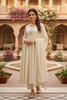 Cream Embroidered Silk Blend Anarkali Kurta With Dupatta Set