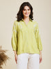 This Black Embroidered Crepe Shirt features elegant threadwork on the shoulders and sleeves, full sleeves with gathered cuffs, and a smart button-down design for a chic, contemporary look.