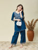 Girl's Teal Blue Chinon Embroidered Kurta plazzo set