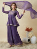 Green Silk Top Sharara Set features rich embroidery on the yoke and sleeves, crafted in premium silk fabric for a luxurious festive look. The flared sharara paired with a beautifully detailed kurta gives a graceful silhouette. The matching dupatta with contrast edging completes the elegant ensemble, making it perfect for festive celebrations, parties, weddings, and special occasions