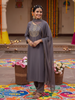 Grey Embroidered Chinon Kurta with Dupatta Set