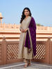 Grey Embroidered Silk Anarkali Kurta With Purple Dupatta Set