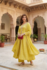 Lemon Yellow Embroidered Silk Anarkali Kurta With Dupatta Set