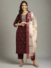 Maroon Embroidered Chinon Kurta Set with Digital Printed Dupatta