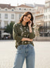 Olive Embroidered Viscose Blend Shirt for Women