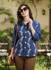 Pair it with white trousers or beige culottes for a chic contrast. Complete the look with pearl studs, nude heels, and a sleek handbag for effortless elegance.