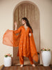 Orange Chinon Embroidered Kurta & Dupatta Set for Girls