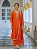 Orange Embroidered Chinon Kurta with Dupatta Set. Crafted from soft chinon fabric, it features delicate embroidery for a graceful, festive look. Lightweight and elegant, perfect for special occasions.