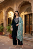 Teal Blue Solid Velvet Anarkali Suit With Dupatta