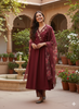 Grace meets grandeur in this stunning Purple Embroidered Anarkali Kurta Set with Printed Dupatta, perfect for festive gatherings and intimate celebrations. Crafted from a lustrous fabric, the Anarkali kurta features delicate floral embroidery around the neckline, sleeves, and hem, creating a rich, ornate look. The scalloped V-neckline adds a feminine touch, while the silhouette flows effortlessly for an elegant drape.