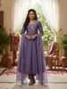 Purple Embroidered Anarkali Kurta Set with Printed Dupatta