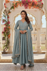 Sky Blue Embroidered Silk Blend Anarkali Kurta With Dupatta Set