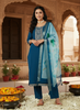 Teal Blue Yoke Design Chinon Straight Suit With Printed Dupatta