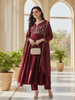 Teal Blue Embroidered Silk Anarkali kurta with Dupatta Set