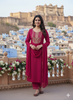 Teal Blue Embroidered Chinon Kurta with Dupatta Set