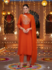 Teal Blue Chinon kurta set, beautifully adorned with intricate embroidery on the yoke. Paired with matching straight pants and a delicately embellished dupatta, this ensemble blends traditional charm with modern grace. Crafted in lightweight, flowy Chinon fabric, it ensures comfort and a flattering fall, making it perfect for festive gatherings, weddings, and special occasions.