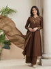 Women’s Yellow Embroidered Cotton Anarkali Kurta set With Dupatta
