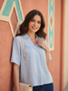Women's Sky Blue Embroidered Rayon Oversize Shirt