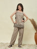 Yellow Viscose Blend Embroidered Top & Pant set for Girls